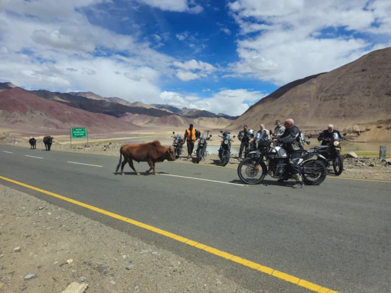 You will experience a wide variety of road conditions that showcase the diversity of the Himalayas. The journey includes smooth tarmac on the plains and foothills, but as we ascend, you will encounter sections of gravel, broken tarmac, and unpaved roads, especially over the high mountain passes. The ride also includes challenging sections like the 21 hairpin bends of the Gata Loops and several water crossings from glacial melts.